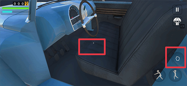 4、再次移动准星至驾驶座位置,点击“拳头”按钮进入车内。