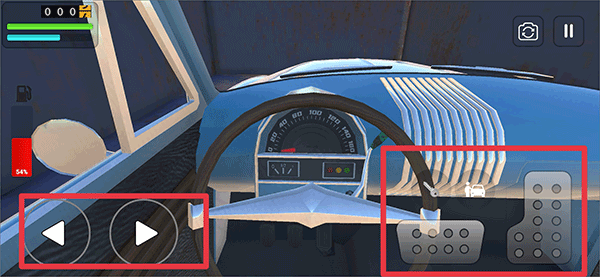 5、成功上车后即可启动引擎。左侧虚拟摇杆控制方向,右侧分别为前进与倒车按键,轻松操控车辆前行。