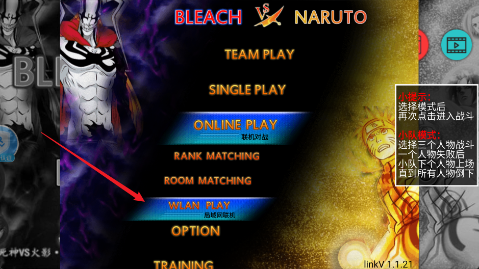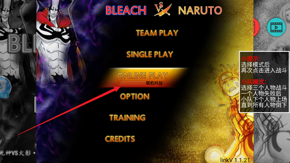 1.选择角色:在游戏开始前,玩家需要选择自己喜欢的死神或火影角色进行游戏。