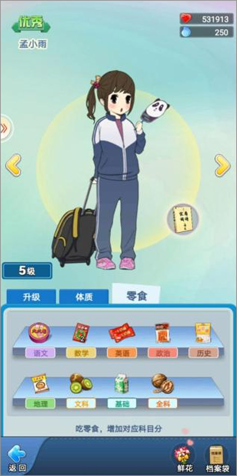 零食不仅唤起童年回忆,更有实际增益效果——食用后可提升对应科目的考试分数。零食来源包括小卖部购买(主界面→走廊→小卖部)或日常走访收集。