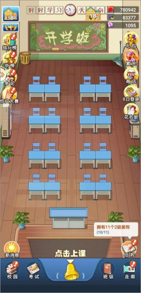 老师通过积累经验提升等级,经验满后即可升级。每次升级都将提高其对全班学生的学科加分效果,进一步推动学生成绩飞跃。