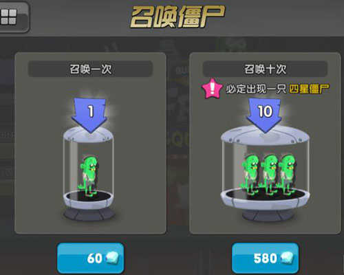 1、僵尸可以通过捕捉和召唤两种方式获得,捕捉到的僵尸多是一星和二星的僵尸,为了获取更多资源,当然最好有高等级的僵尸,这时候就要召唤僵尸了,不过需要大量的钻石。