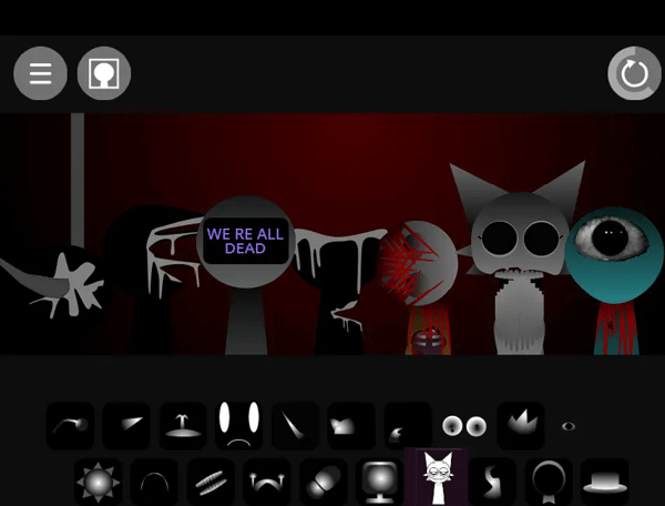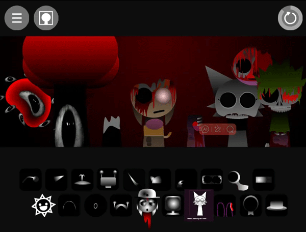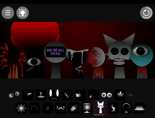 3、sprunki模组最吸引人的便是其隐藏的恐怖模式,将最后一个黑色礼帽图标拖至主角头顶即可触发异变。
