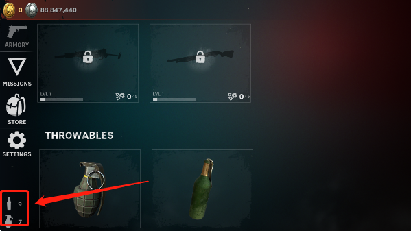 3、游戏中玩家在武器库中选择两把武器,投掷物则可都携带。