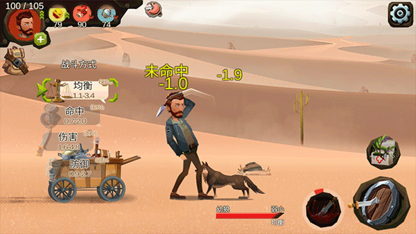 8、当遭遇野狼或其他威胁生物时,可进入战斗模式进行对抗;