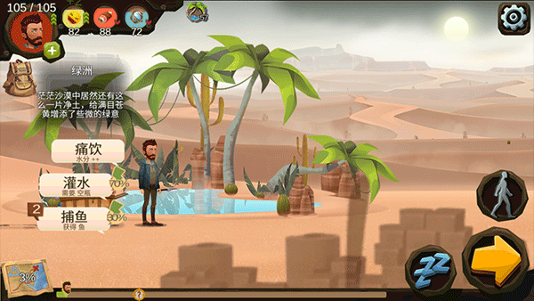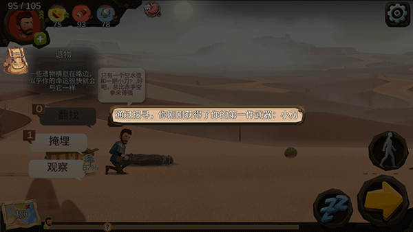 3、进入游戏后,屏幕下方设有行走与跑步两种移动模式,根据体力合理切换;