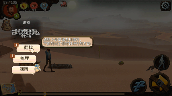 在行进过程中,除了遭遇事件外,地面会随机刷新可拾取物,如药草、枯草、石子等;房屋内也可能藏有食物或机械零件,务必全部收入背包,任何一点资源都可能成为续命关键。