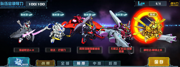 队长技:神敢达/明镜止水出任队长,触发多模式机体间的协同机制,激活隐藏属性联动