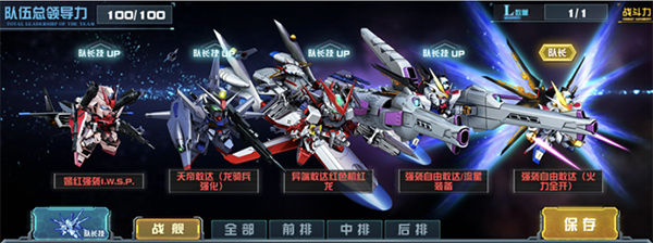 队长技:推荐由嫣红强袭I.W.S.P或强袭自由敢达(火力全开)担任队长,可大幅提升全队输出爆发力,尤其适合快速压制对手前排