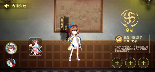 了要的技能是智能助手,该技能会释放一个小机器人,向最近的敌人运动,并拖住触碰到的敌人,小机器人受到攻击就会死亡