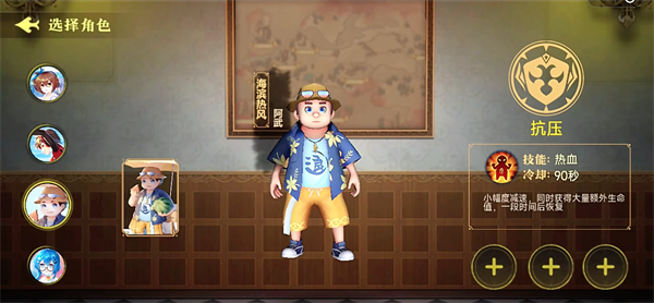 阿武的技能是热血,使用此技能会让自己的速度变慢,同时会获得大量额外的生命值,速度会在一段时间后恢复