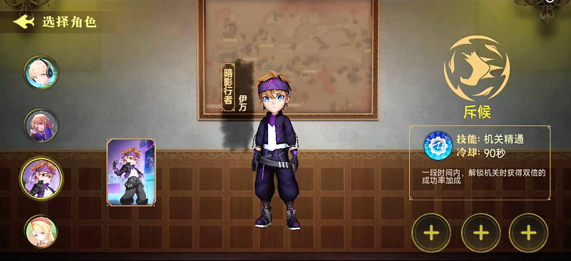 伊万的技能是机关精通,在一段时间内,解锁机关时获得 双倍的成功率加成