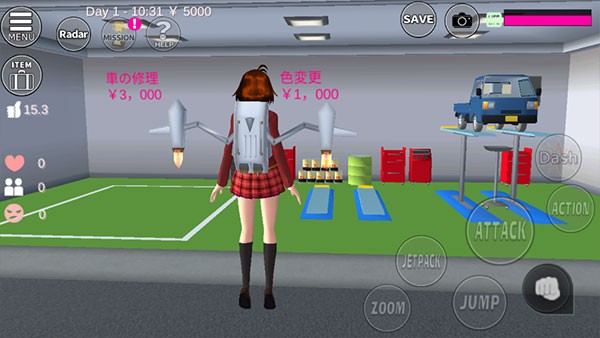 3、支持驾驶各类载具畅游城市,更有炫酷喷气背包助你突破地心引力,自由翱翔天际,解锁脑洞大开的创意玩法。