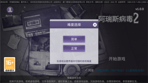 2、登录后,点击开始游戏,选择游戏难度,分为简单和困难两种;