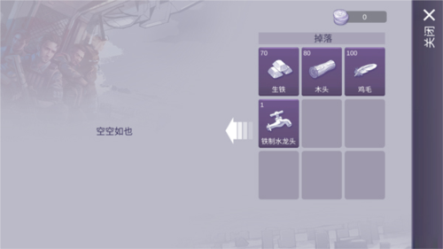 5、玩家需控制角色收集地图上掉落的物资材料,如木头、生铁、鸡毛等;