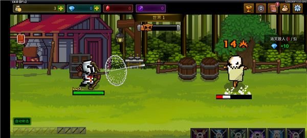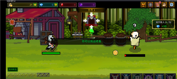 2、角色会自动进行远程射击,玩家需专注于走位躲避,灵活应对敌群围攻;
