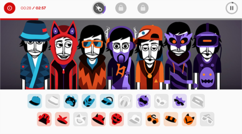 1、将音效图标拖动至对应角色头上,使其发声并构建个性化音乐段落。