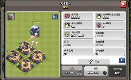2、首先哥布林打资源可以化整为零,比较针对于资源建筑,小巧灵活,在日常打资源的过程中可以以小部队来分散采集阵型当中的资源,采集效率较高。