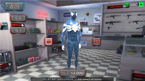 8、游戏内置多种风格迥异的蜘蛛侠皮肤,随心切换造型,打造专属英雄形象;