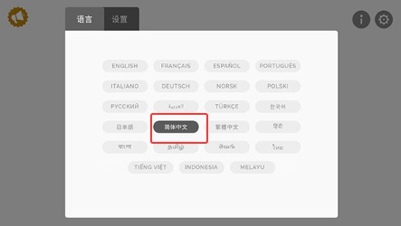1、主界面找到齿轮图标进入设置,在语言栏下拉选择"简体中文"即可完成语言切换。