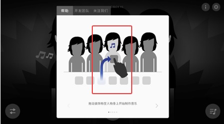 3、将右下角的乐器、特效等图标拖到角色周围,每个装饰物都会触发不同音效。