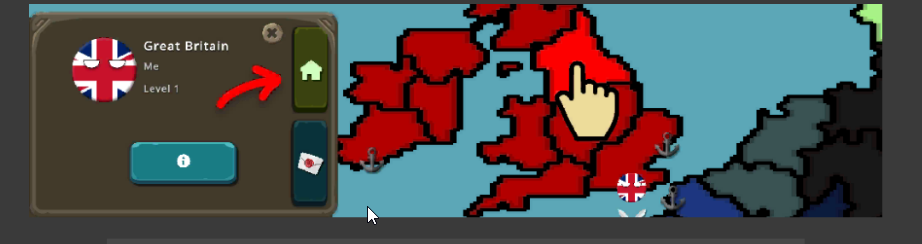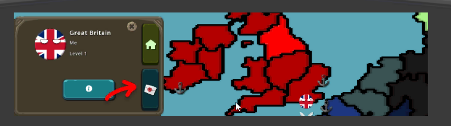 进入友好国家的领地后,点击带有房屋图标的按钮,即可访问该国并进行互动。