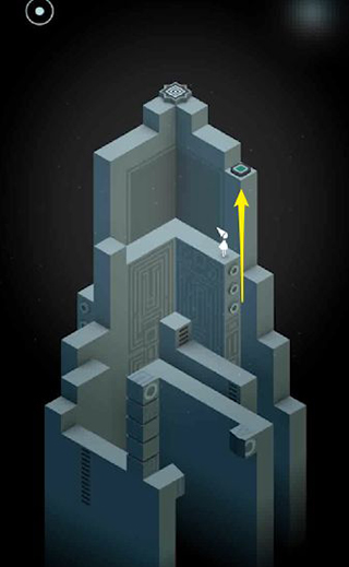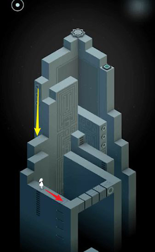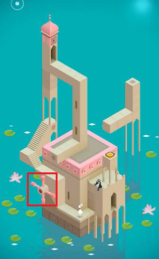 8、从门中走出后,再次旋转底部机关,使路径向上弯曲,通向高处塔顶的门。