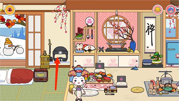 在招财猫旁边的柜子旁,轻轻撕开墙纸,会露出一个隐秘空间,成功解锁酷炫的忍者主题装扮套装。