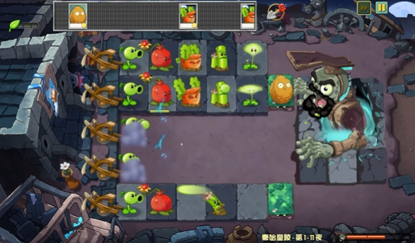 应对策略:当秦始皇僵尸准备进攻时,需迅速在任意地方放下冰菇或辣椒,以应对其吐火球或冰球。