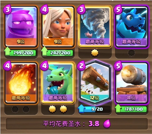 总之这是一套接近完美的墓园卡组,女枪的高伤害高射程,骑士的坦度和龙宝宝的AOE伤害,电车的连环控制都能保证守住对面的每一次进攻。