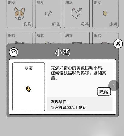 小鸡召唤条件:管家等级达到50级时自动解锁。