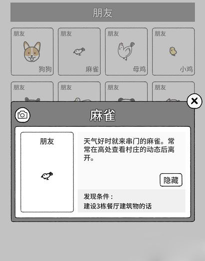 麻雀召唤条件:拥有三栋餐厅类建筑后,麻雀自然会飞来光顾。