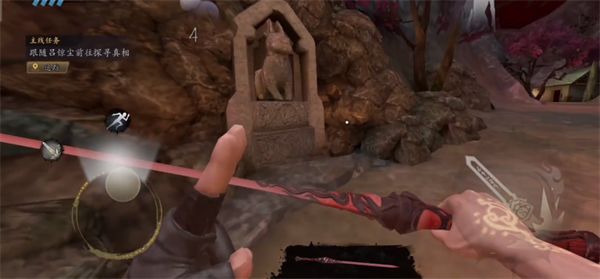 3、按照系统提示进行基础操作学习:左侧虚拟摇杆控制角色移动方向,右侧则分布攻击及其他功能按键;