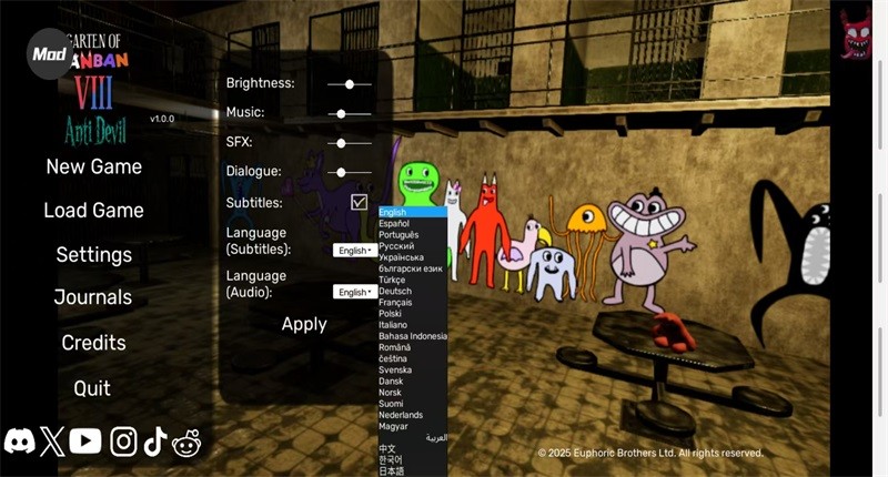 班班幼儿园8MOD菜单,在这个最新的版本中可以体验到新的内容,丰富的剧情故事等你游玩体验,玩家需要不断的探索来寻找游戏背后的真相,同时也可以根据自身的需要来切换语言,对此感兴趣的话快来体验吧,
