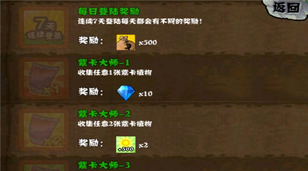 4、游戏还设有成就挑战,含括登录奖励及植物收集成就,玩家可通过完成这些目标获取额外体验和奖励。