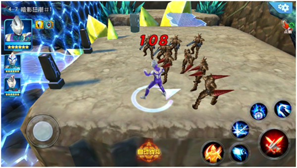 3、自由切换不同奥特战士,熟练掌握各自连段技巧与技能衔接,打出属于你的华丽终结技。