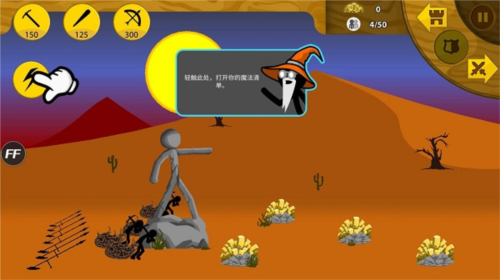 有足够的矿石,就能点击攻击类的火柴人,派遣它们去摧毁敌人的基地。