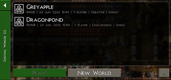 2、在存档列表中选择右下角的“New World”选项,创建一个全新的游戏世界;