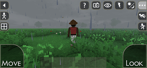 7、右上角包含视角切换、天气调节等功能按钮,在危机四伏的世界中合理利用这些工具将助你更好地存活下去。