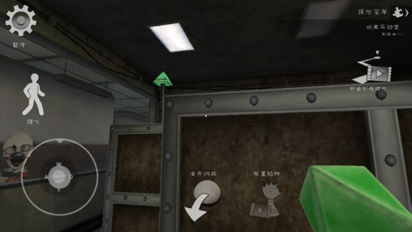 9、返回原处,拾取绿色三角体,抬头环顾四周,寻找带有绿色三角标志的投影位置。
