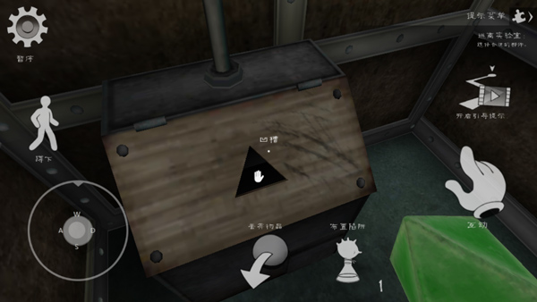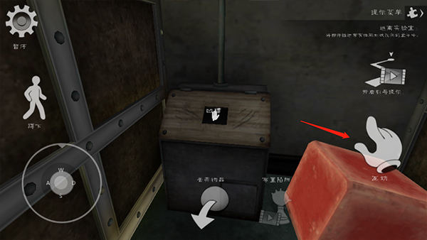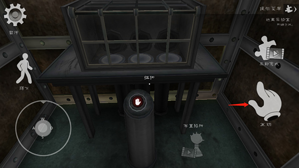 4、经过一番探索,你会在某个角落发现一个神秘机关——当把界面中的白点对准红色按钮时,会出现一只可交互的手形图标,点击即可触发机关。