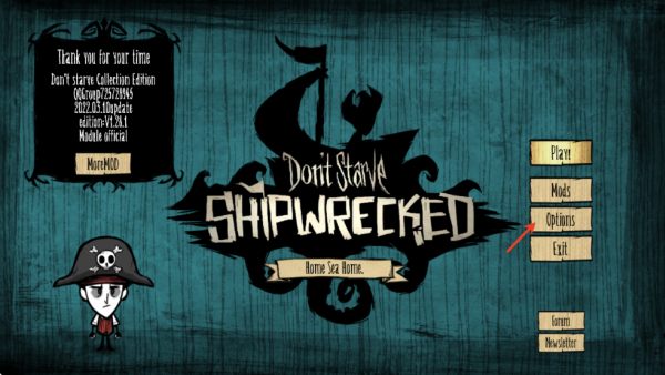 1、进入游戏之后点击options选项。