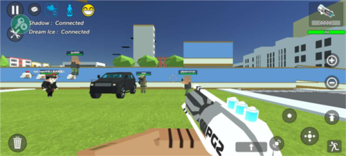 4、进入热血沸腾的像素战场,驾驶载具、手持枪械展开激烈对战,体验高速竞技的乐趣,在对抗中击败对手赢得荣耀。