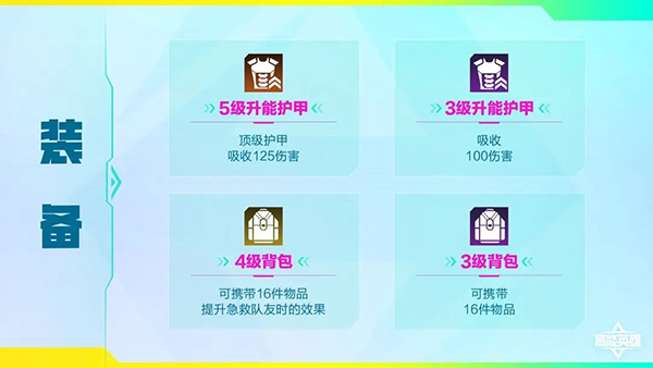 装备:其中「5级升能护甲」为支援仓专属物品(玩家无法从地面中得到,但可以通过积累伤害和升能得到);