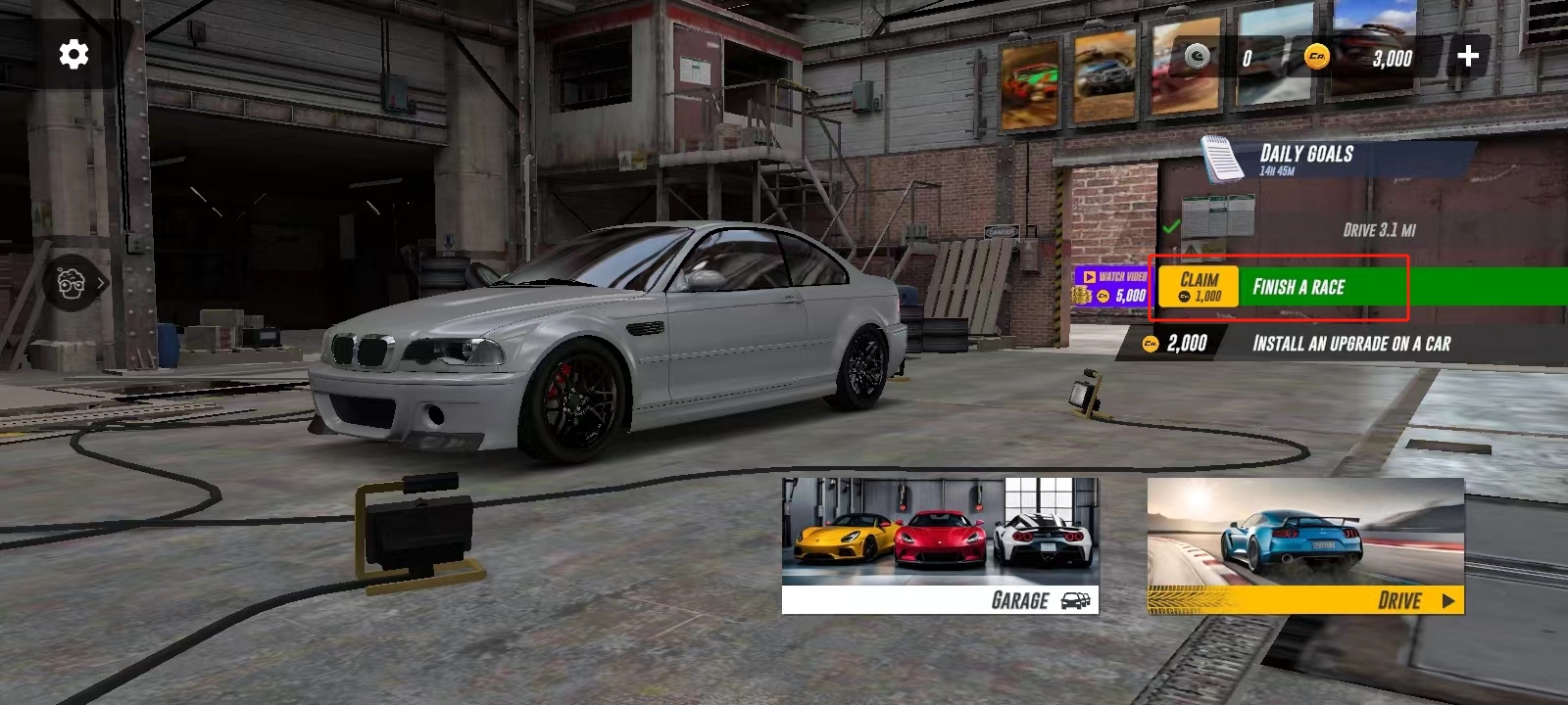 6、现在就开始完成日常任务吧,第一个任务很简单,开车的时候达到那个数值即可完成,第二个任务是完成一次比赛,玩家需要将车开到下图这个地方;