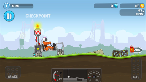 本作采用横版物理模拟驾驶机制,操作上摒弃传统虚拟方向盘设计,转而使用双按键控制系统——长按左下角实现倒退,右下角则为前进动力输出。这种非对称式操控强调重心管理与动态平衡,要求玩家根据坡度起伏及时调整前后推力,防止车辆倾覆。相较于普通竞速类游戏,本作更注重技巧性与节奏感,虽少了高速冲撞的刺激感,却带来了别具一格的操作乐趣与挑战深度。