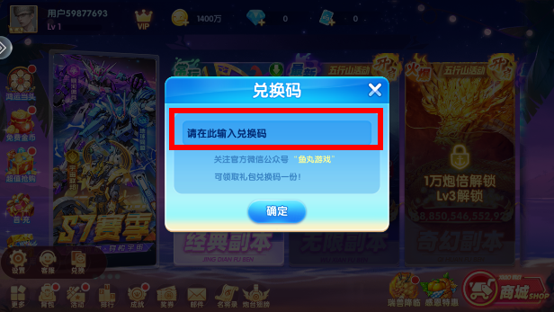 3、点击兑换之后,就能输入兑换码了,小编为大家提供一个兑换码:xinshoulibao,请尽早兑换。