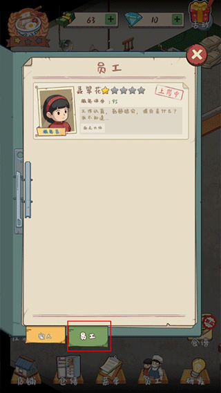 3.选择好要升级的员工后,接着点击升级按键,需要的一定金币才可以给员工进行升级。