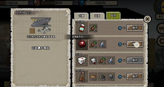 安全屋中的微型工厂,可以制作各种道具,可以说是功能最丰富的设备了。工作台可以制作的道具包括武器,衣服,医疗用品和其他道具。毕竟随着游戏的进程僵尸越来越厉害,光靠一对拳头是远远不够的。有了工作台,近战武器,枪械子弹,帽子衣服大背包都可以轻松入手。升级工作台还能解锁更高级的装备,武装到牙齿不是梦,黑石城我横着走。