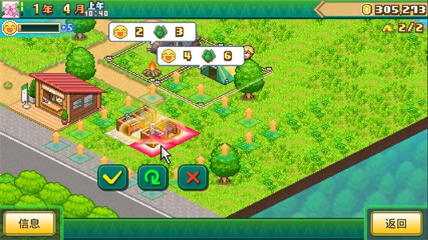 3、无时间限制的自由经营模式,让你按照自己的步调打造理想营地——是追求热闹人气,还是独享静谧山居,一切由你决定。